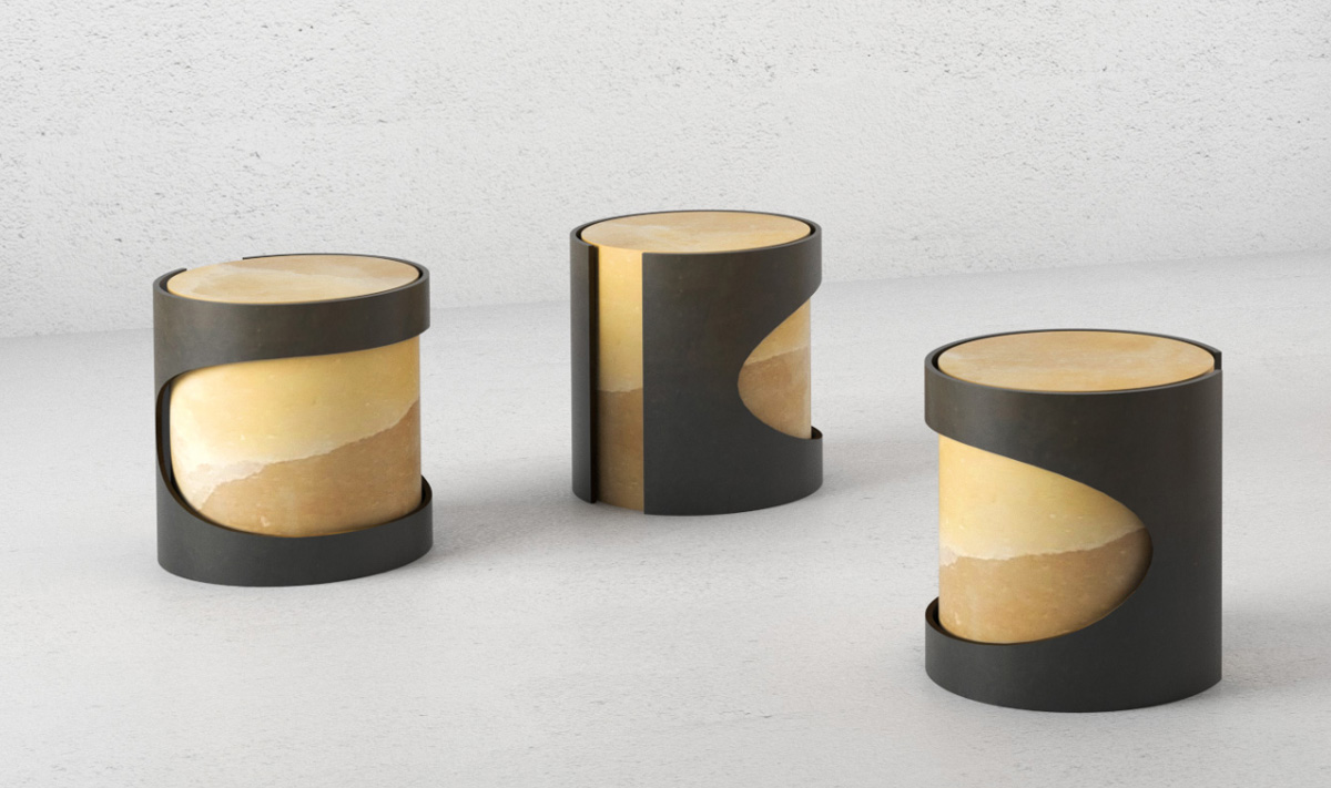 Les bouts de canapé/assises ainsi que le banc rejoignent la collection haut de gamme BACO. Entre massivité et délicatesse, BACO explore le contraste et célèbre la rencontre de matériaux bruts et d’exception. Onyx et acier dialoguent ici avec justesse.